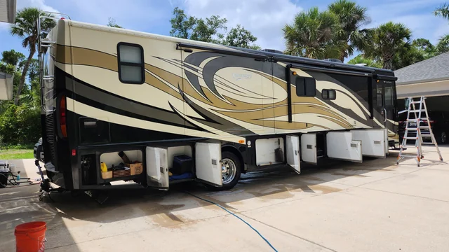 The OG RV Shine & Shield is a professional wash and wax service designed specifically for larger vehicles that demand extra care and attention. RVs face constant exposure to sun, road grime, bugs, and environmental buildup, and this service restores their appearance while adding protective shine. Our process begins with a full exterior wash using premium detailing products to safely lift dirt, grime, and contaminants from the RV’s surface. Wheels, trim, and exterior panels are thoroughly cleaned to bring the entire vehicle back to life. Once clean, we apply a high-quality wax that enhances gloss while creating a protective barrier against UV rays, oxidation, and environmental wear. This step helps preserve the finish and keeps your RV looking sharp longer between washes. Because of the size and exposure RVs endure, attention to detail matters. Every panel, seam, and surface is handled carefully to deliver a clean, polished result that reflects the same professional standard OG Mobile Detailing applies to every vehicle. At OG Mobile Detailing, every vehicle gets the same professional care and attention to detail. Our team follows a proven process to ensure consistent, high-quality results every time. We handle every job with precision, using techniques and products designed to protect your vehicle while restoring its look and feel.